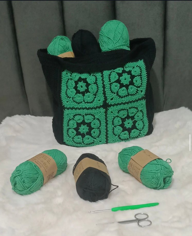 Örgü Bohem Motifli Kadın Çantası - Yeşil&Siyah