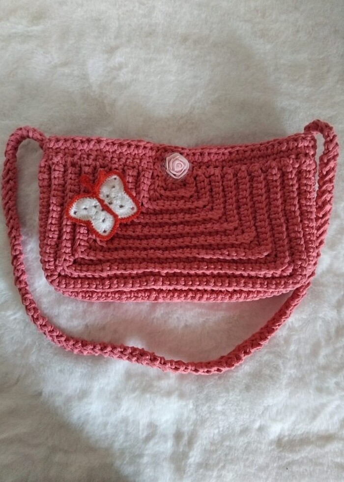 Pembe Örgü çanta bıyut: 24cm - 14 cm