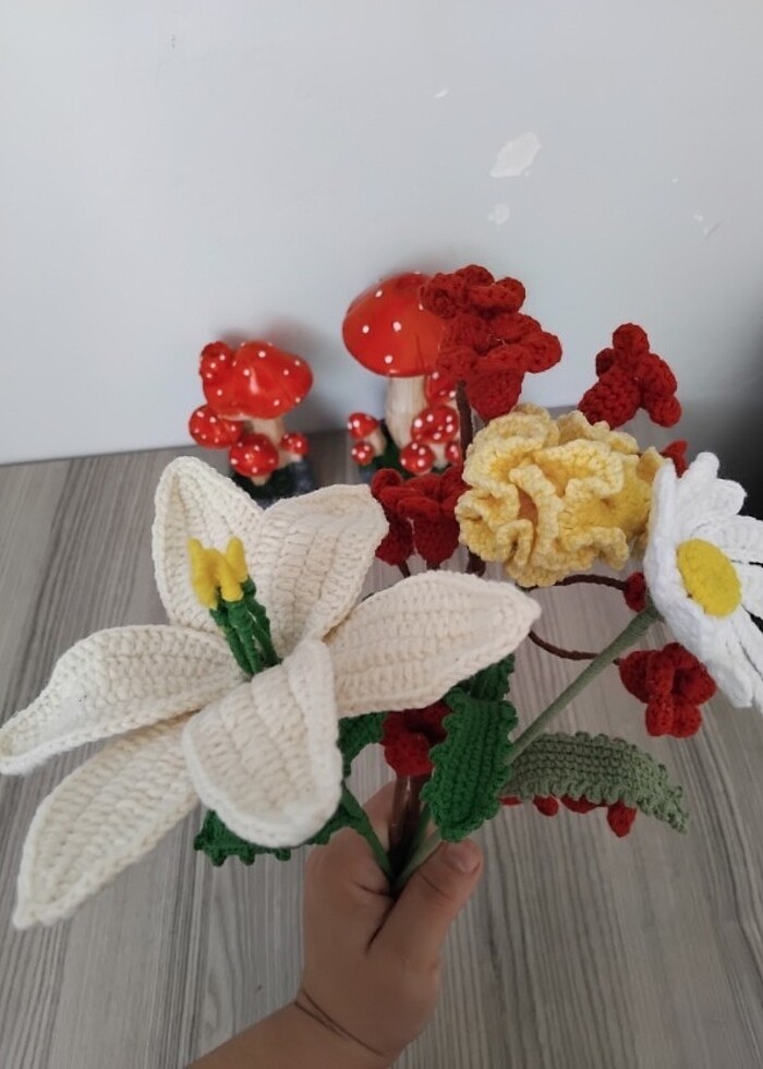 Örgü çiçek buketi fiyatıdır. Tek isterseniz iletişime geçebilirsiniz. #örgüzambak #örgüpapatya #Örgükaranfil