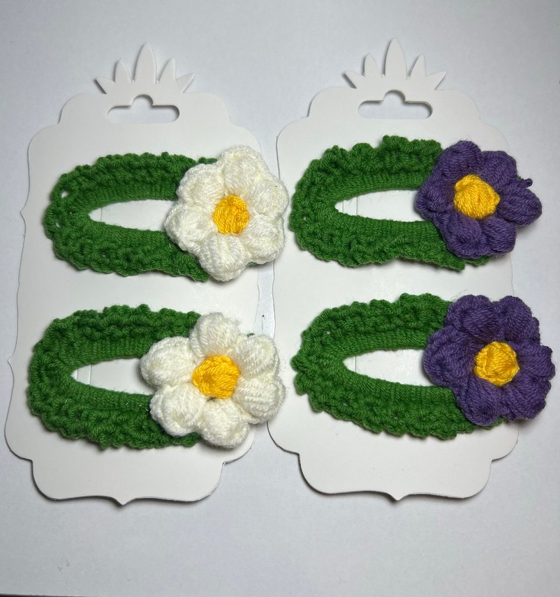 Örgü Çiçek Desenli Renkli Çocuk Toka Seti