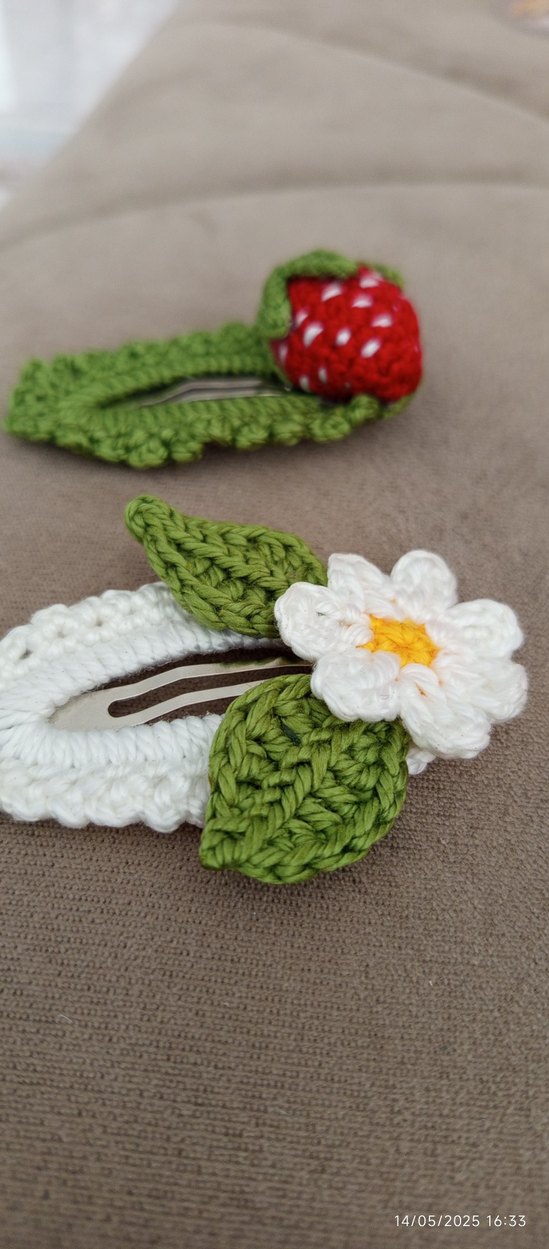 Örgü Çiçekli ve Çilekli Çocuk Toka Seti