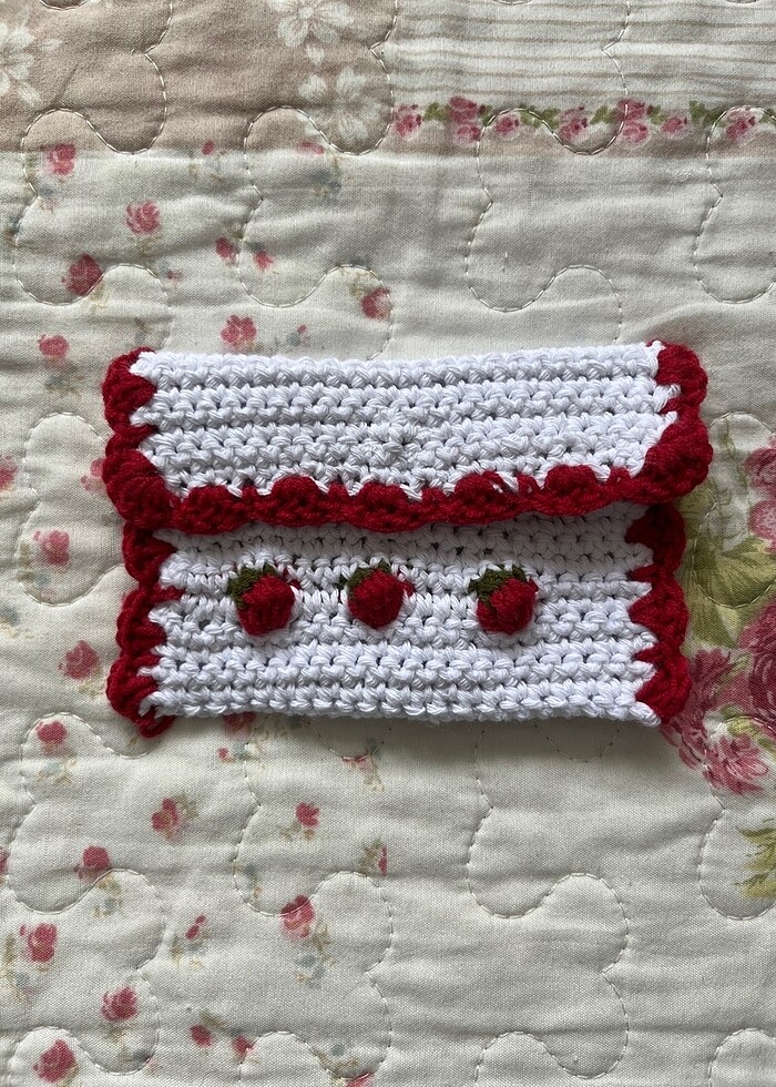 örgü çilek cüzdan kartlık