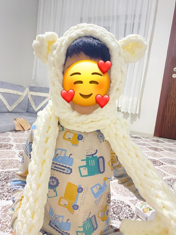 Yumuşak ve kalın örgü dokusuna sahip, ayı kulak detaylı beyaz örgü çocuk bereli atkı. İstenilen renk ve boyutta yapılır. İsteğe bağlı kulaklı veya kulaksız yapabilirim. Tek çocuk değil yetişkinlere uygun da yapılır