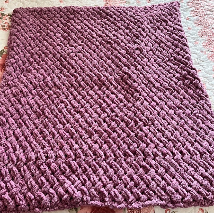 Mor renkte, yumuşak dokulu örgü çocuk battaniyesi, sıcak tutar ve konfor sağlar. Battaniye ve içine koymalıdır
