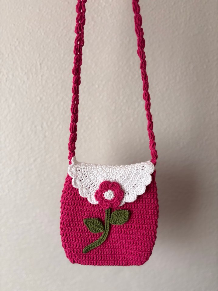 Pembe bayram çantası. Kartopu amigurumi ip ile örülmüştür. Tüylenme yapmaz. İstenilen renkte yapılır.