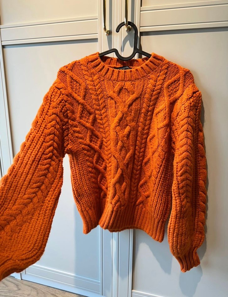 Örgü desen sıfır turuncu kazak