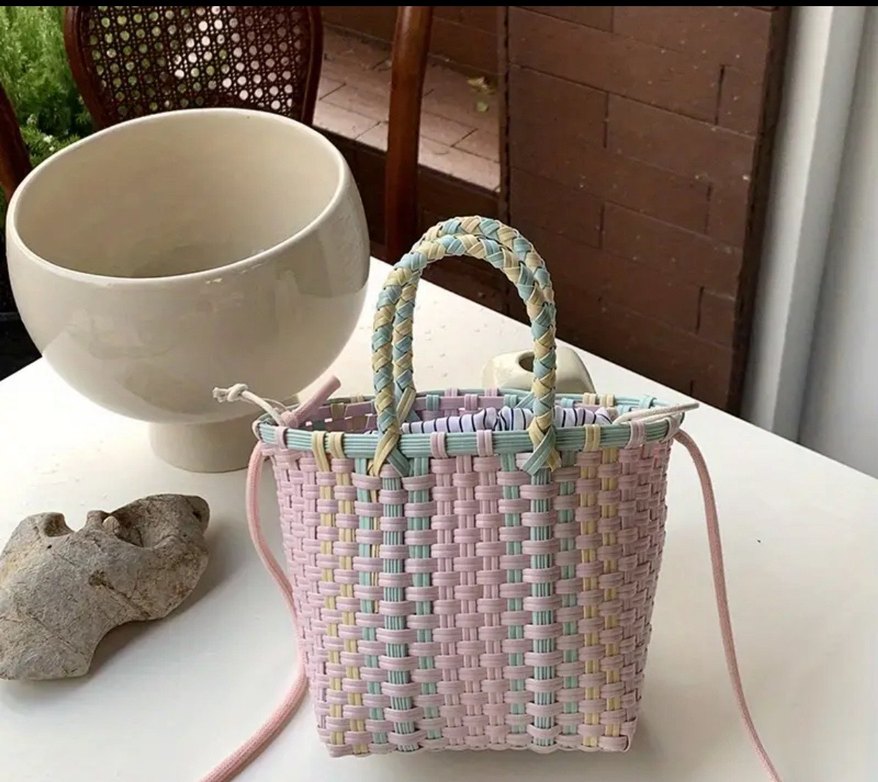 Pastel renkli, dantel detaylı ve örgü saplı bohem tarzda plaj çantası, günlük kullanım için uygundur.