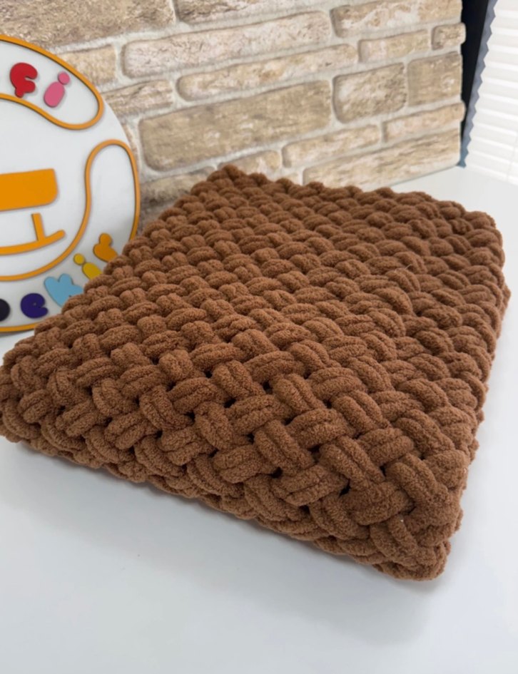 Örgü Desenli Kahverengi Çocuk Battaniyesi