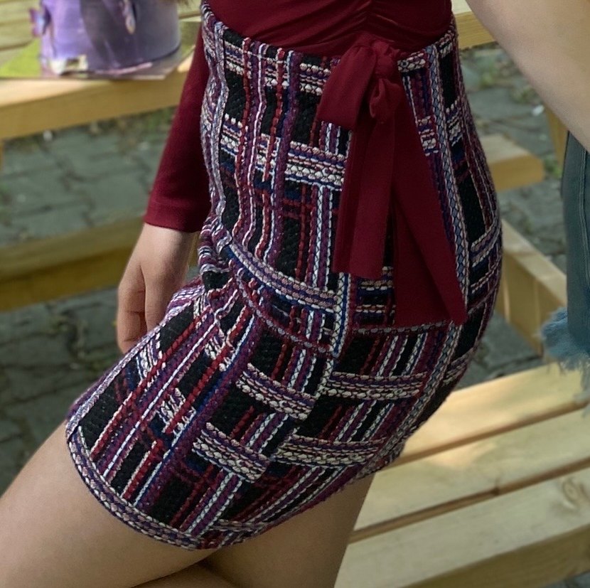 Bu fitted midi etek, koyu çok renkli örgü desenli tasarımıyla rahat ve bohem tarzı bir araya getirir, günlük kullanıma uygundur.