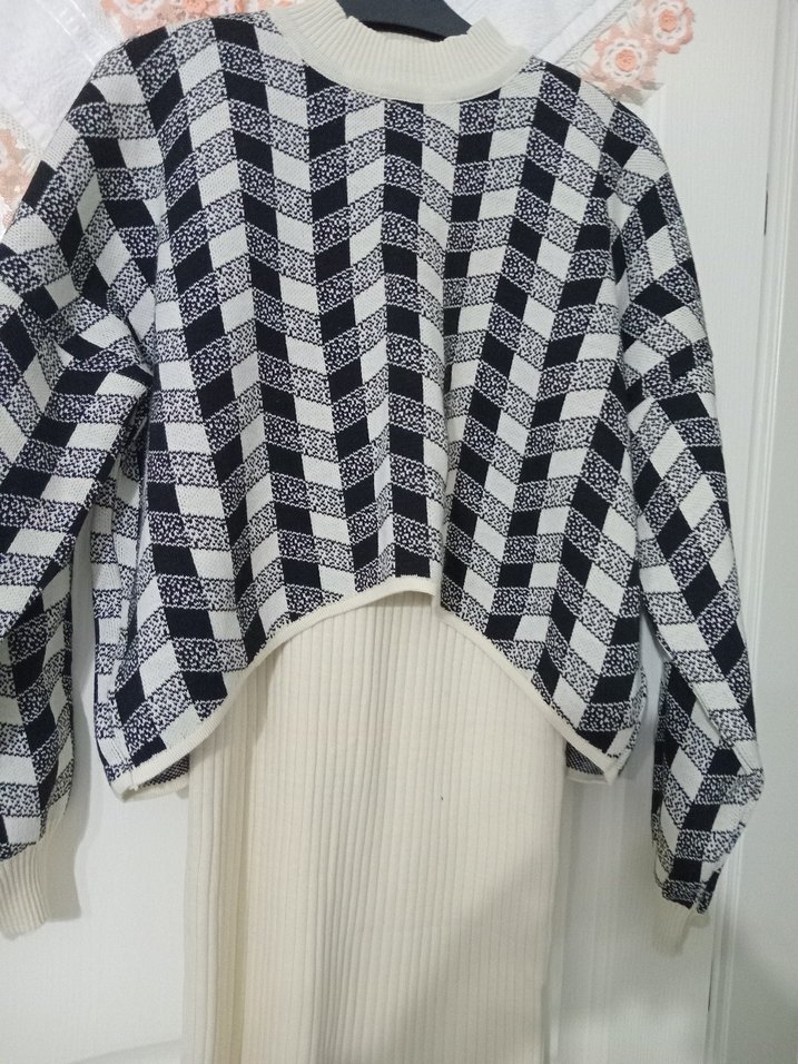Bu kadın kazağı, siyah beyaz geometrik desenli örgü tasarıma sahiptir. Uzun kollu, yuvarlak yakalı ve rahat kesimdir. Günlük kullanıma uygun, konforlu ve rahat bir sokak stili sunar. hiç giyilmedi