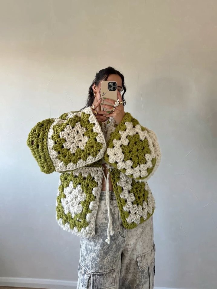 Örgü desenli, açık yeşil ve krem renklerinde, bol kesim midi uzunluğunda bohem tarzda kadın hırka. Uzun kollu ve boğazlıdır. RENKLERİ KENDİNİZ BELİRLİYORSUNUZ.
