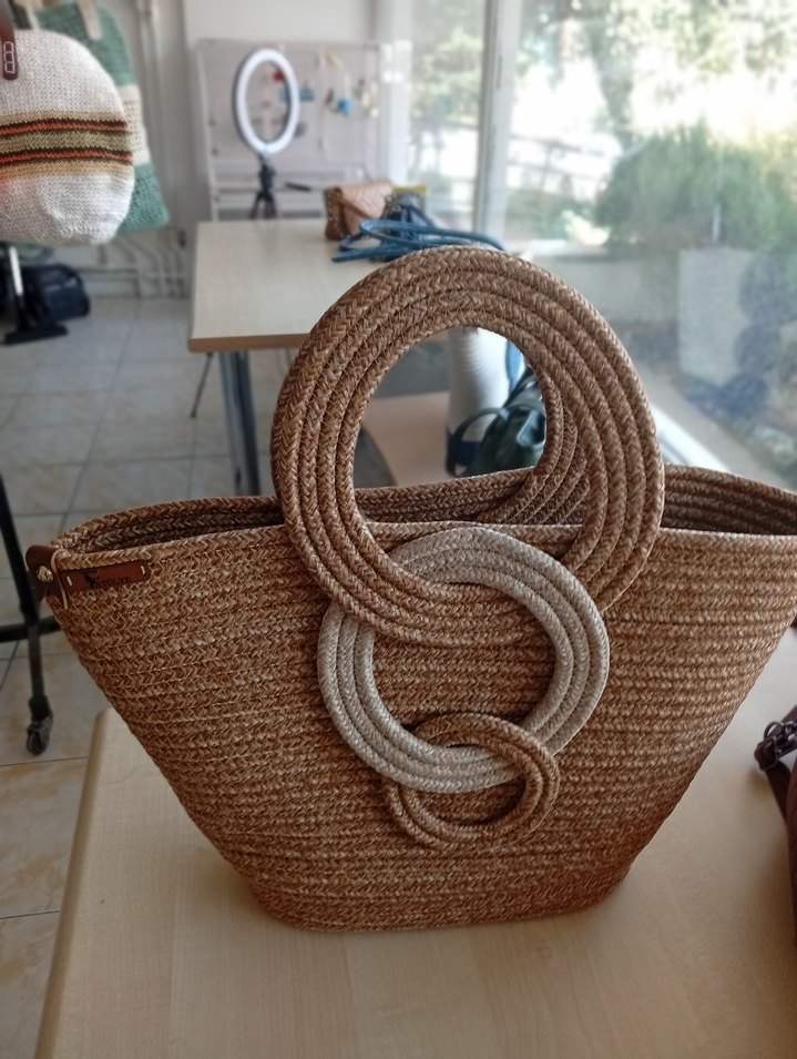 Örgü detaylı, kahverengi bohem kadın çanta. Minimalist ve retro tarzıyla günlük kullanıma uygun.