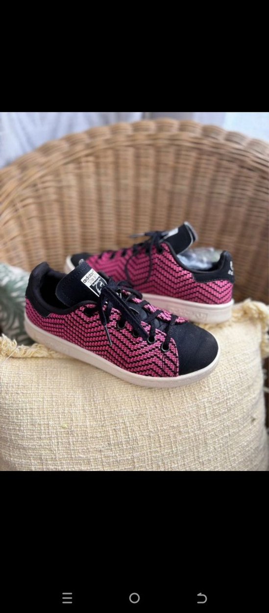 Örgü detaylı, koyu pembe tonlarında, bağcıklı kadın spor ayakkabısı. Düz kauçuk tabanlı, spor ve günlük kullanım için uygun. stan smith süet ve örgü orijinal 38 numara az kullanıldı