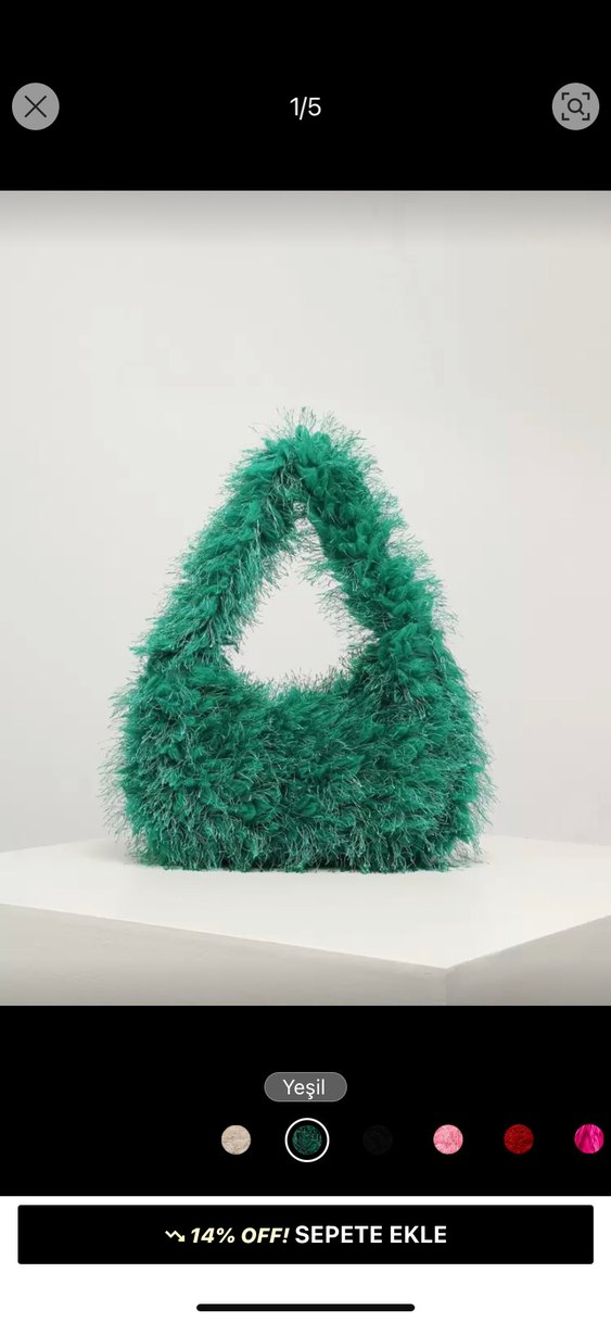 Yeşil renkte, örgü dokulu ve sentetik kumaştan yapılmış kadın çantasıdır. Avant-garde ve bohem tarzıyla partiler için renkli bir tercihtir. Sheinden alınmıstır sıfır üründür