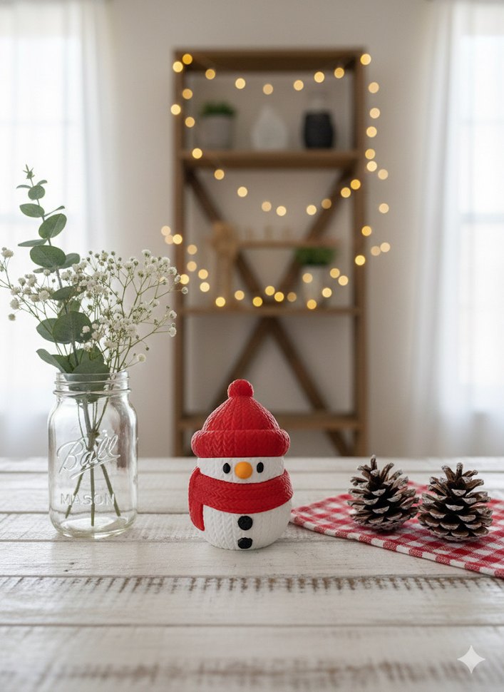 Kışın büyüleyici ruhunu bu sevimli kardan adam figürü ile evinize taşıyın. Arka plandaki puslu çam ağaçları ve pencerelerinden ışık sızan ahşap kulübe, tam bir kış masalı atmosferi sunuyor. Yeni yıl tebrik kartları, sosyal medya içerikleri veya kış temalı dijital projeleriniz için idealdir. Boy 12.5 cm genişlik 8.5 siparişiniz için ilan açtırmayı unutmayın…