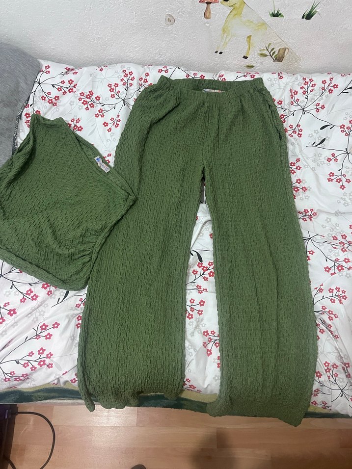 Örgü Dokulu Salaş Yeşil Kadın Pantolon