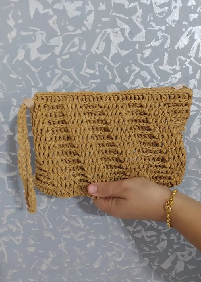 Kağıt ip ile örülmüştür. Astar ve fermuarlı