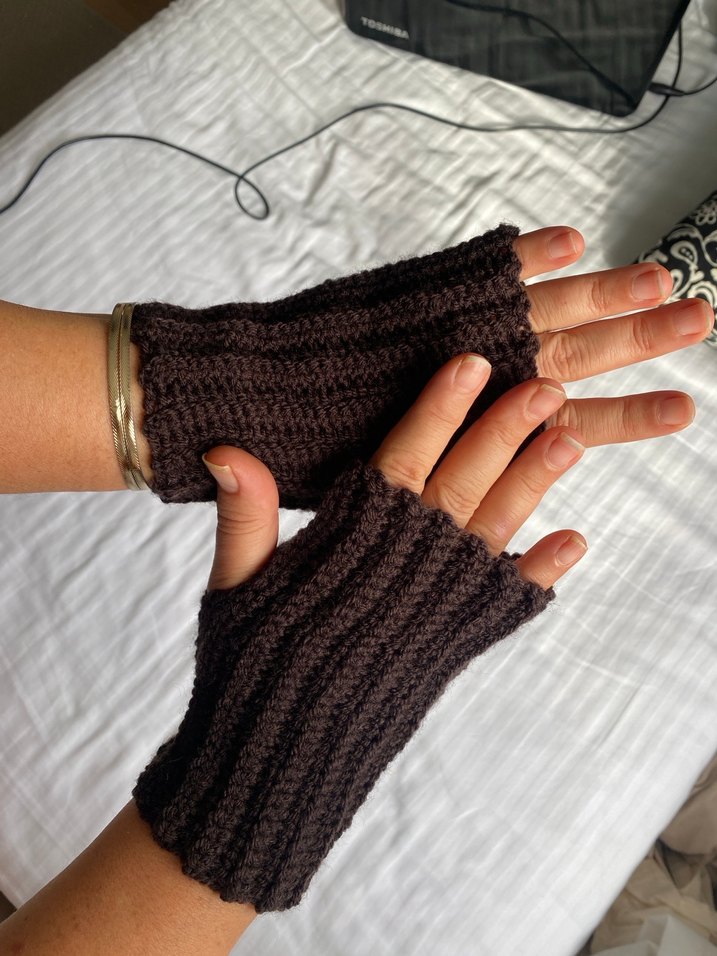 Acı kahve örgü eldiven el örgüsüdür parmaksız