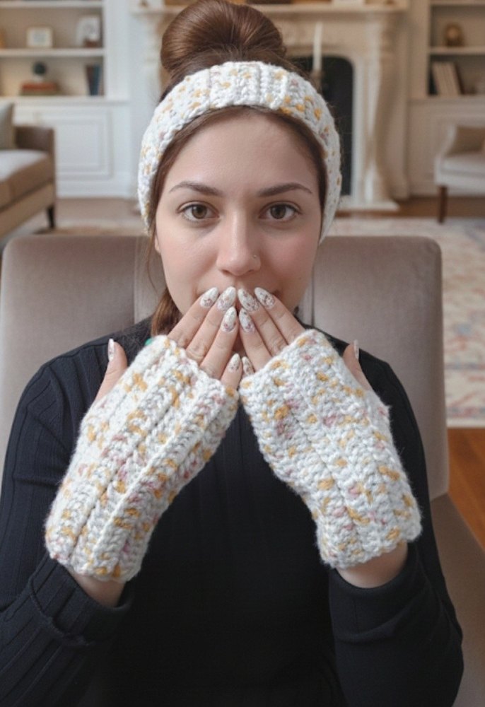 Örgü eldiven ve saç bandana