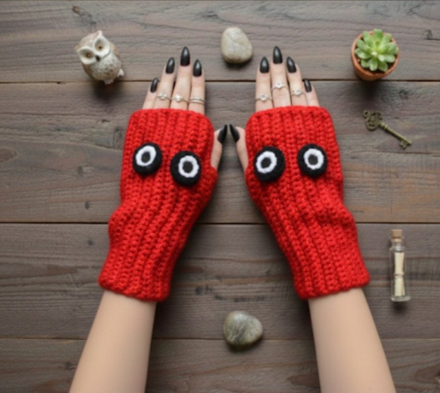 GÖRSEL BANA AİTTİR ✔️ İLAN AÇIYORUM İsteğiniz rengi belirtiniz ✔️ Renklerde 1,2 tık değişebiliyor✔️ parmakları açık kadın eldivenleri, siyah beyaz göz desenleriyle bohem ve retro tarzda sıcak ve renkli bir dokunuş sunar.