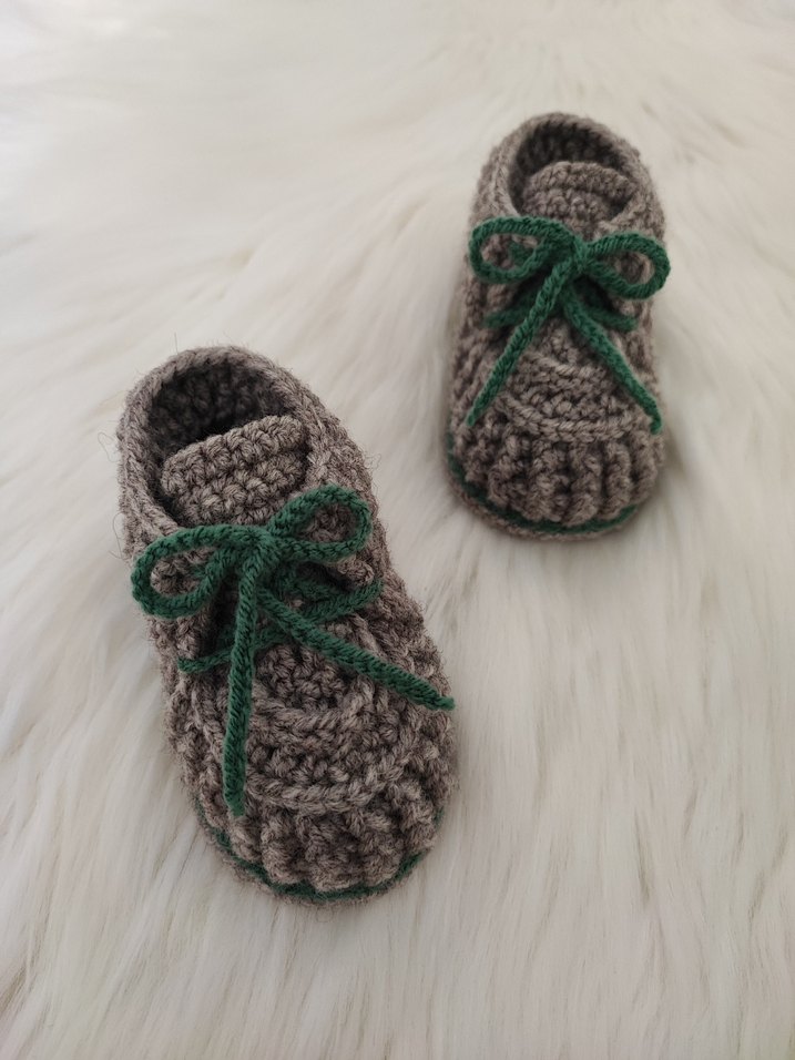 Yumuşak örgüden yapılmış, yeşil bağcık detaylı erkek bebek patik, sade ve rahat tasarıma sahiptir.