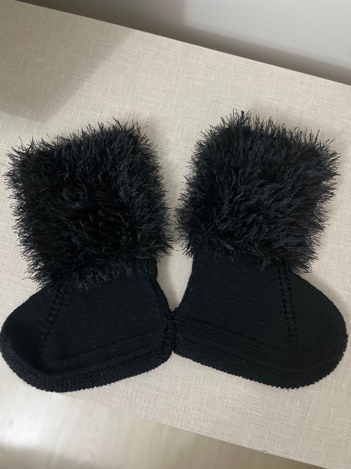 Siyah renkte, kürk detaylı, triko malzemeden yapılmış ev botu. Düz ve desensiz tasarıma sahip. 35-36 no için uygun. Hiç kullanılmadı.