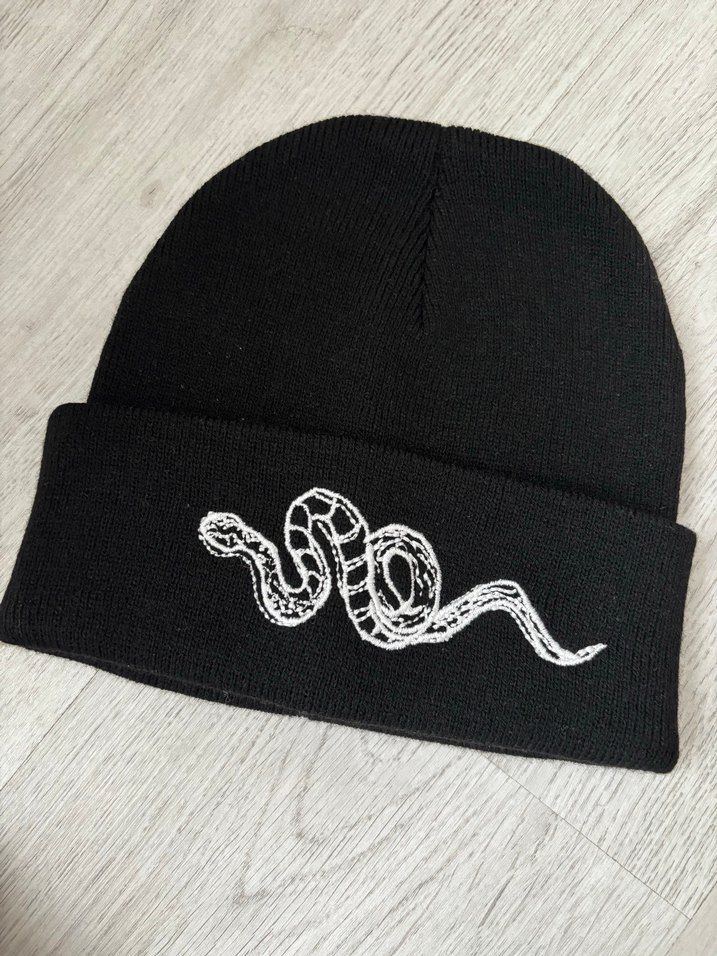 Yılan nakışlı, katlamalı örgü gri kadın bere, rahat örgü kumaşı ve rock punk tarzını bir araya getirir. Favori comseden aldım 2 kere falan giymişimdir