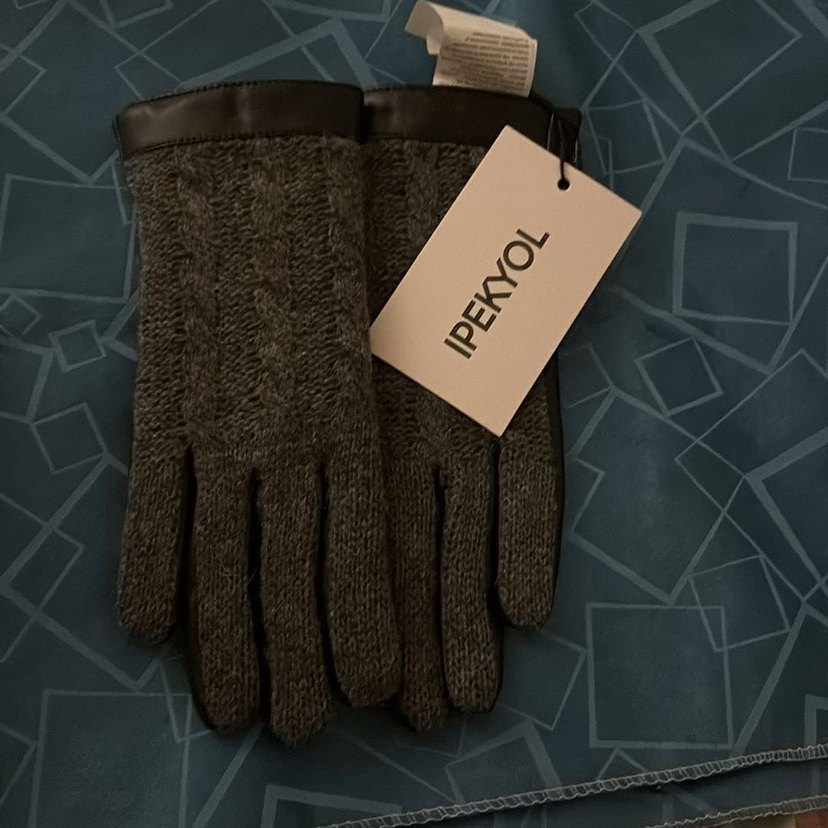Örgü Gri Yün Kadın Eldiveni