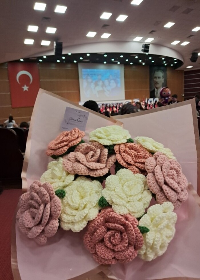 Örgü gül buketi 12li