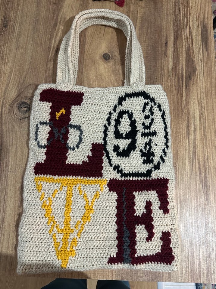 Beyaz renkli, örgü bohem kadın çanta, "LOVE" baskılı desenle romantik akşamlar için uygun, rahat ve retro tarzda.