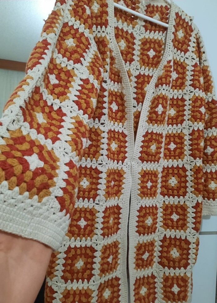 El örgüsü bel altı motifli hırka
