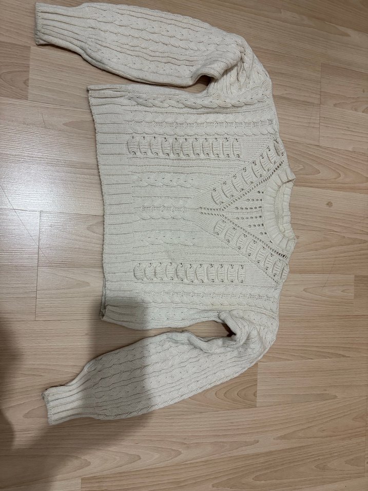 Fitted kesim, beyaz örgü triko kazak, bisiklet yaka ve uzun kollu. Midi boyda, desensiz, rahat bohem tarzıyla günlük kullanıma uygun.