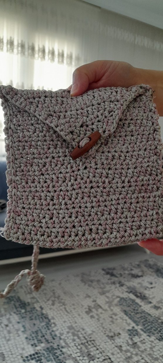 örgü kadın çanta, ahşap düğmeli sade ve rahat tasarıma sahiptir, günlük kullanım için uygundur.