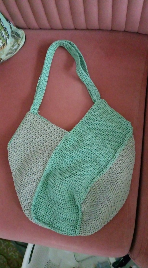 Örgü çanta ipinden yapılmış, pastel yeşil renkte, sade ve desensiz kadın çantası. Günlük kullanıma uygun, bohem tarzda yumuşak dokulu örgü çanta. ürün hiç kullanılmadı kendi el emeğim içi geniş kulanışlı bir canta