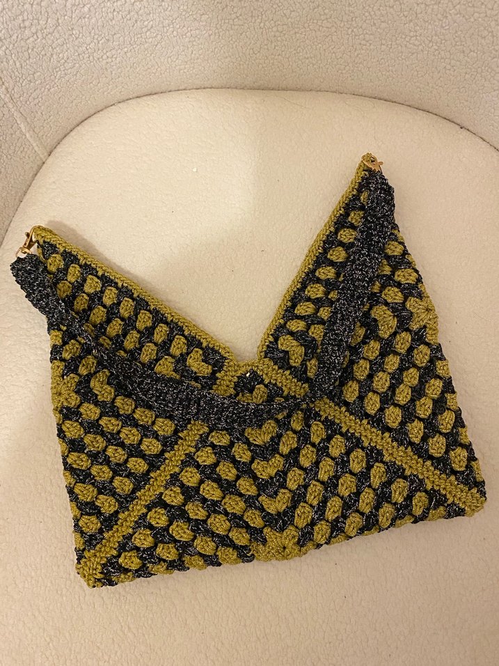Örgü kumaştan yapılmış, desenli bohem tarzda kadın çantasıdır. Rahat ve sıcak bir his sunar. Kendi el örgüm
