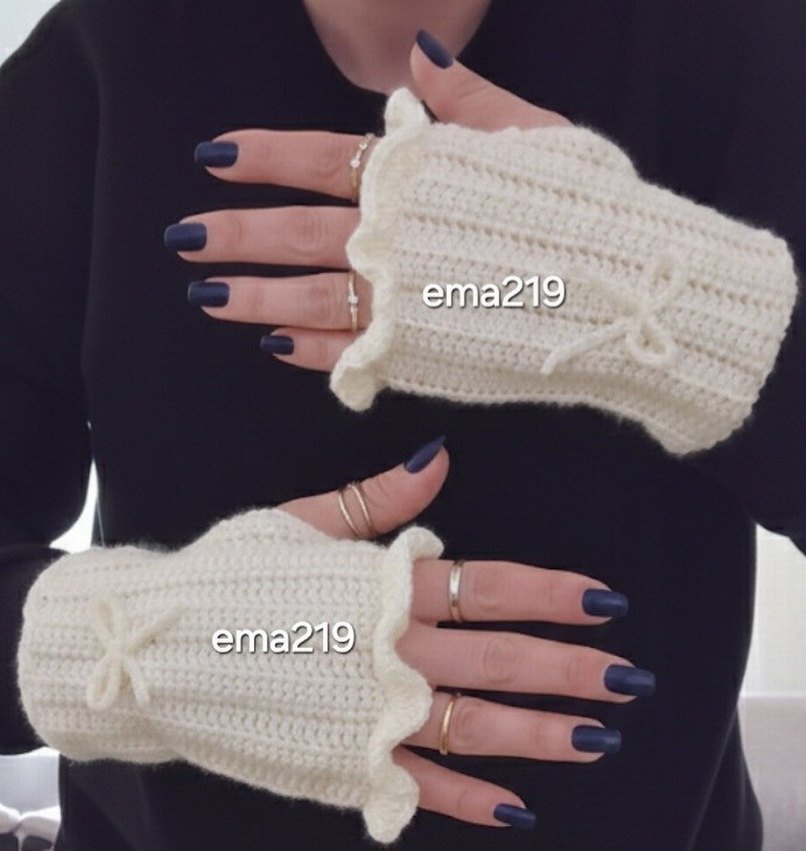 GÖRSEL BANA AİTTİR ✔️ İLAN AÇIYORUM örgü parmakları açık kadın eldivenler, bohem tarzda fırfırlı kenar ve küçük fiyonk detayına sahiptir. Rahat ve kullanışlıdır.