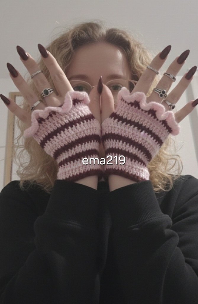 GÖRSEL BANA AİTTİR ✔️ İLAN AÇIYORUM Kadın eldivenleri, pastel pembe ve bordo çizgili rahat örgü tasarıma sahiptir, rock punk havası sunar.