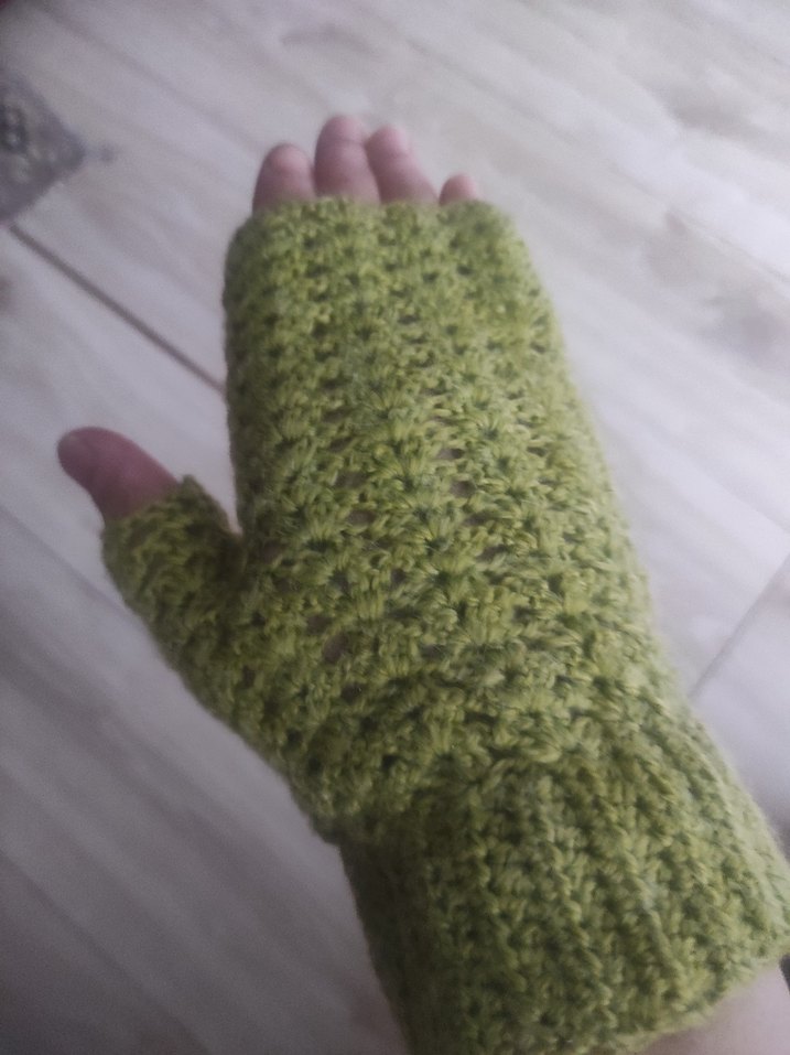 Yumuşak örgü kumaştan yapılmış, açık yeşil renkli, parmakları açık kadın örgü eldiven. Rahat ve sıcak tutar.