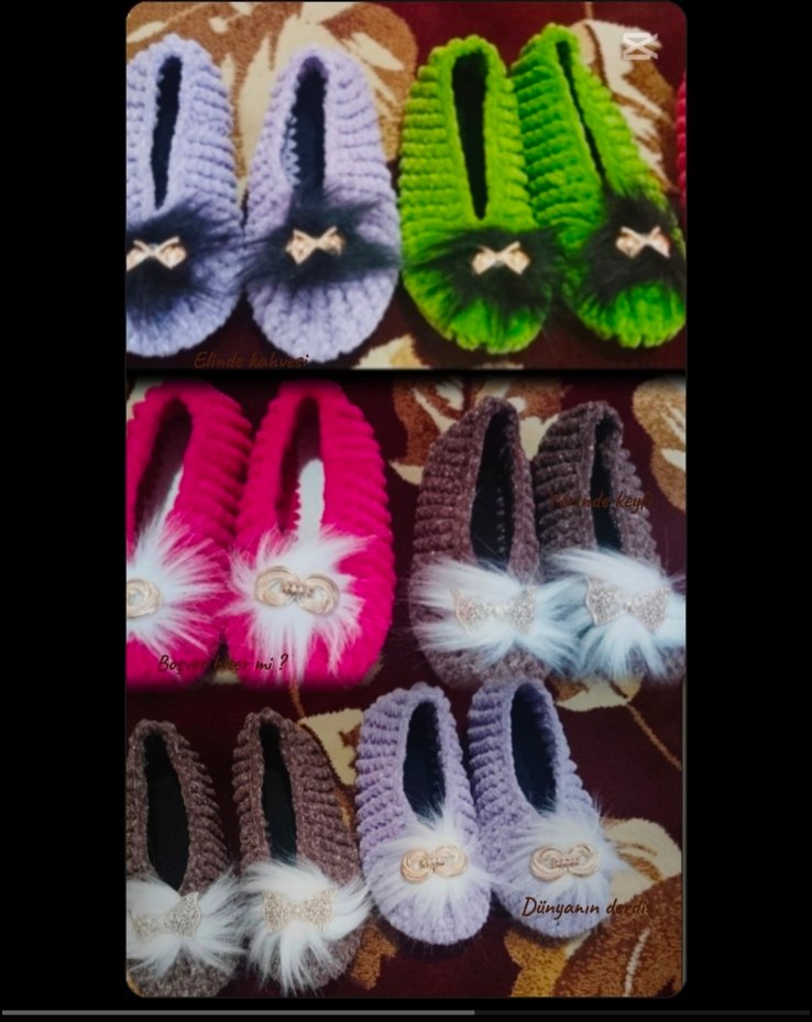 kendi ürünümdür sipariş üzerine oruyorum 1 tane yi 1 günde bitirip ertesi gün kargoliyorum toplu siparişte indirim yaparim adet fiyatı 350 istenilen renkte yaparim 36 numaradan 39 numaraya kadar yapilir
