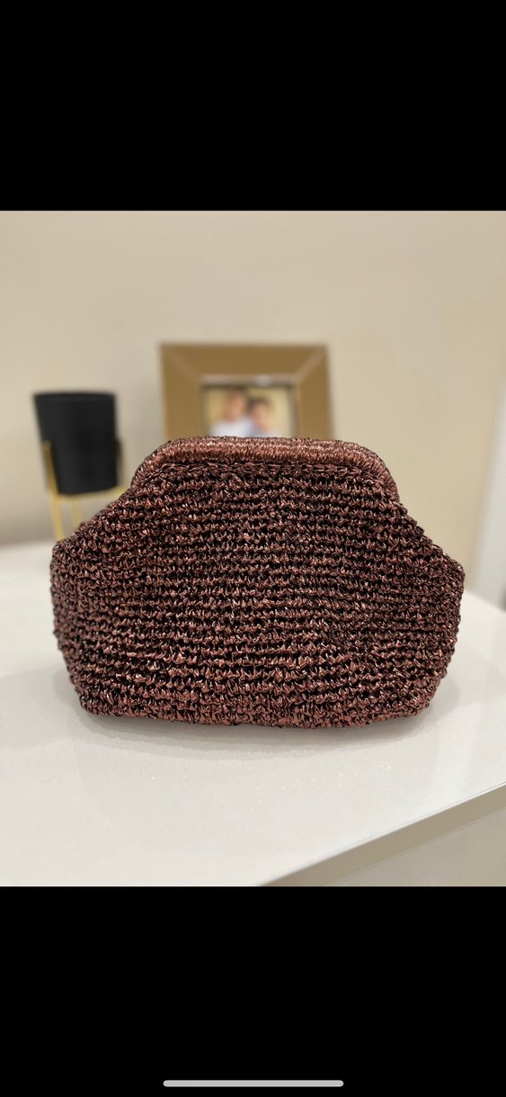 El emeği, sıfır ürün iç kısmı astarlıdır metalik parlak büküm ip ile örüldü.