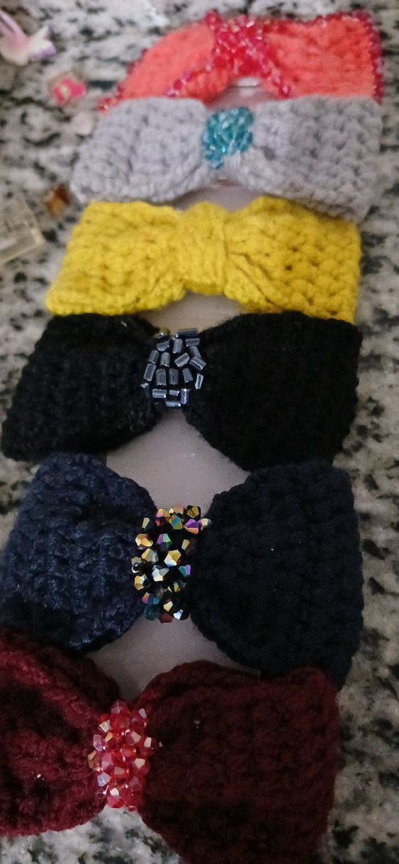 Farklı koyu ve canlı renklerde örgü kadın saç tokaları, dekoratif boncuk detaylı rahat bohem tarzda. Retro ve hippie görünüme uygun. Tekli halinde satılıyor