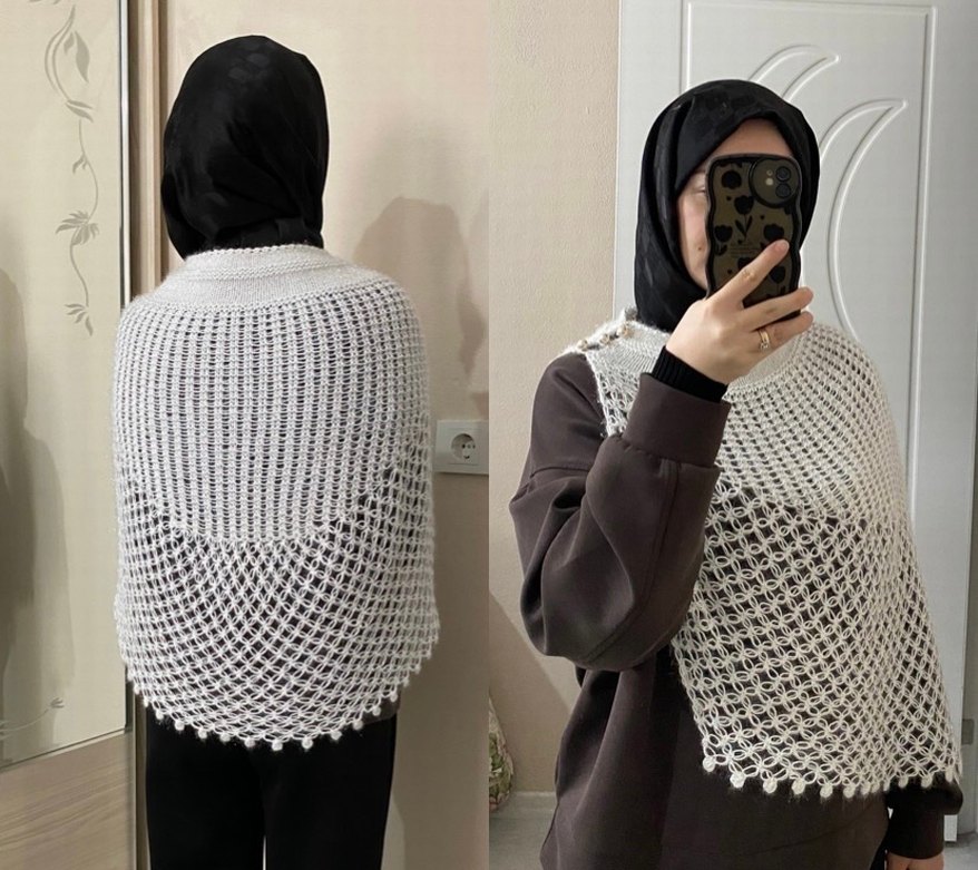 Beyaz ve gri renklerde örme kadın şal, rahat ve sade bir stil sunar. Sokak modasına uygun detaylı örgü deseni bulunur. Marka mecburen seçilmiştir el örgüsü.