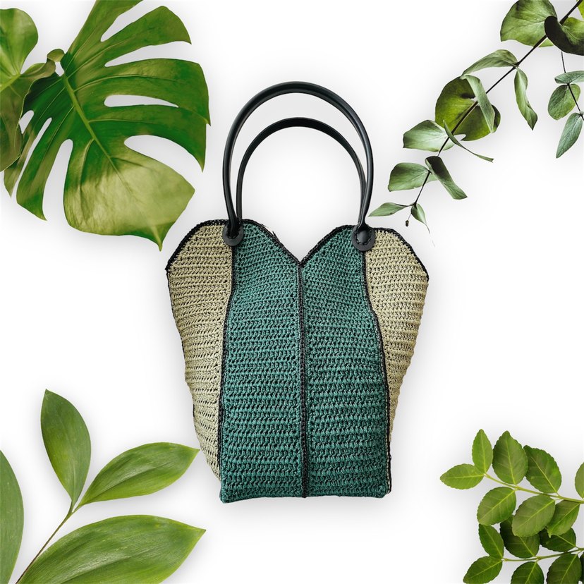 Örgü yeşil kadın çanta, bohem tarzda, minimalist ve avangart tasarıma sahip. Günlük kullanım için harika bir çanta.çıtçıtlı ve astarlıdır.ölçüleri en 40 x boy 38 cm