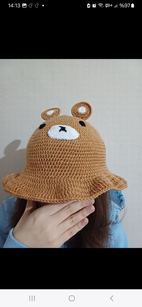 Kahverengi örgü kadın şapka, ayıcık yüzü ve kulak detaylarıyla bohem ve retro tarzlar için uygun.