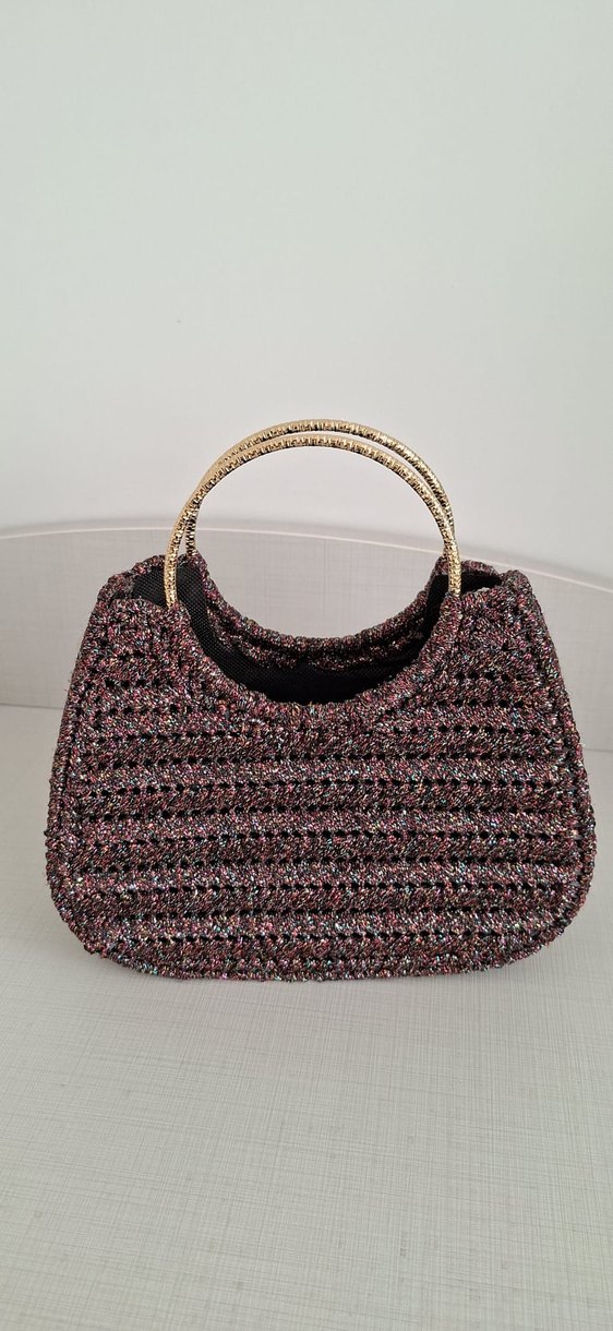 isteninlen renkte yapilur.Örgü dokulu, koyu kahverengi tonlarında, altın renkli saplı bohem tarzda kadın çantası. Desensiz ve günlük kullanıma uygun.
