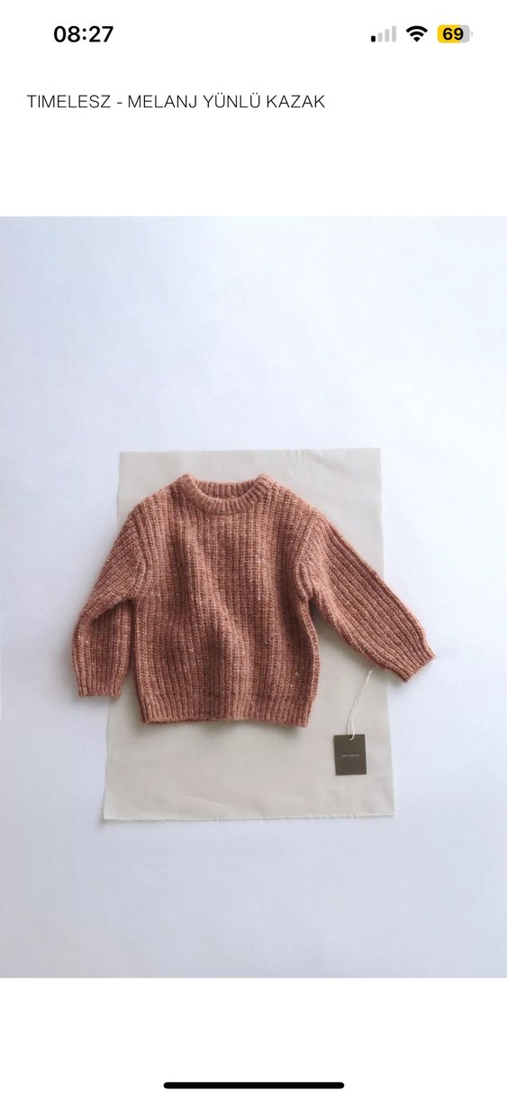 Kahverengi örgü kazak, yuvarlak yaka ve uzun kolludur. Rahat kesimi ve normal boyu ile günlük kullanıma uygundur.