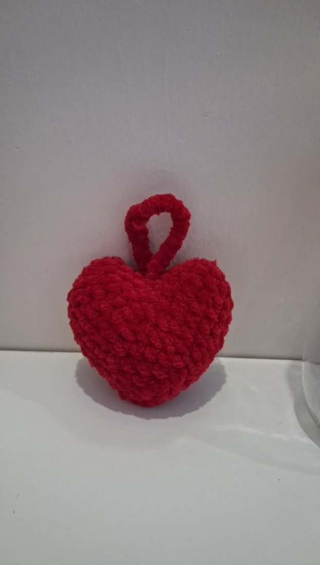 kırmızı örgü kalp yılbaşı ağaç süsü, nakış detaylı, bohem ve retro tarzlara uygun, romantik akşamlar için ideal.