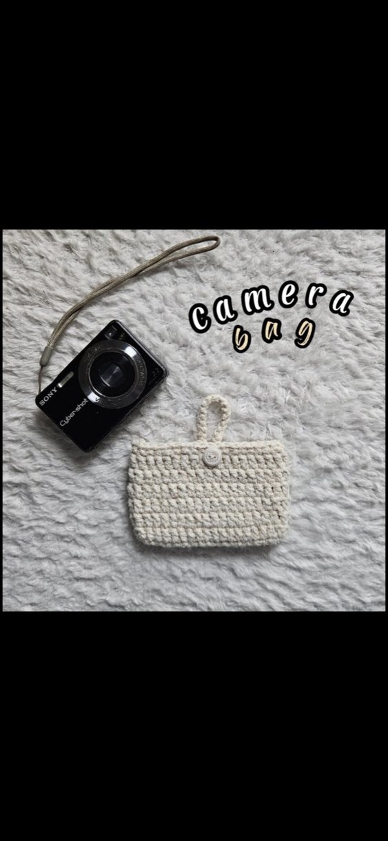 Hello Kitty Düğmeli ve küçük saplı beyaz örgü kamera çantası, kompakt dijital kameralar için uygundur. İstediğiniz renklerde örülür.