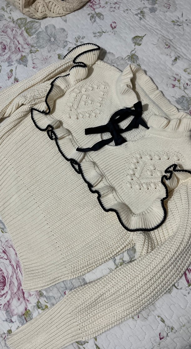 Uzun kollu, siyah fiyonklu ve fırfır detaylıdır.