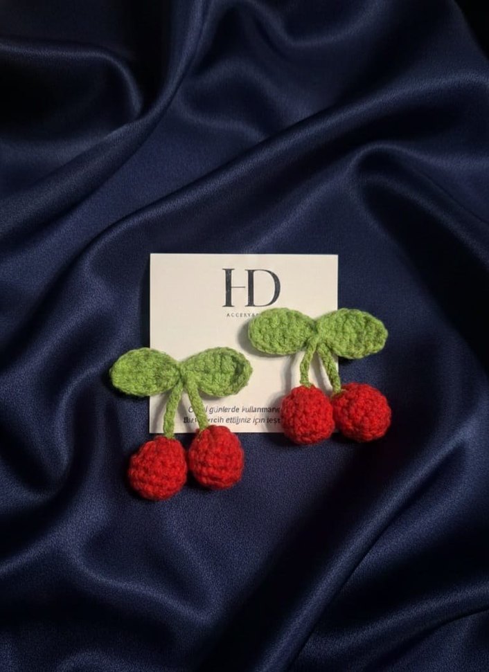 Nakışlı detaylara sahip renkli örgü kiraz şeklinde çocuk tokası.5m çıt çıt toka uzerine tuylenmeyen ip ile örülmüştür. Çift fiyatıdır.